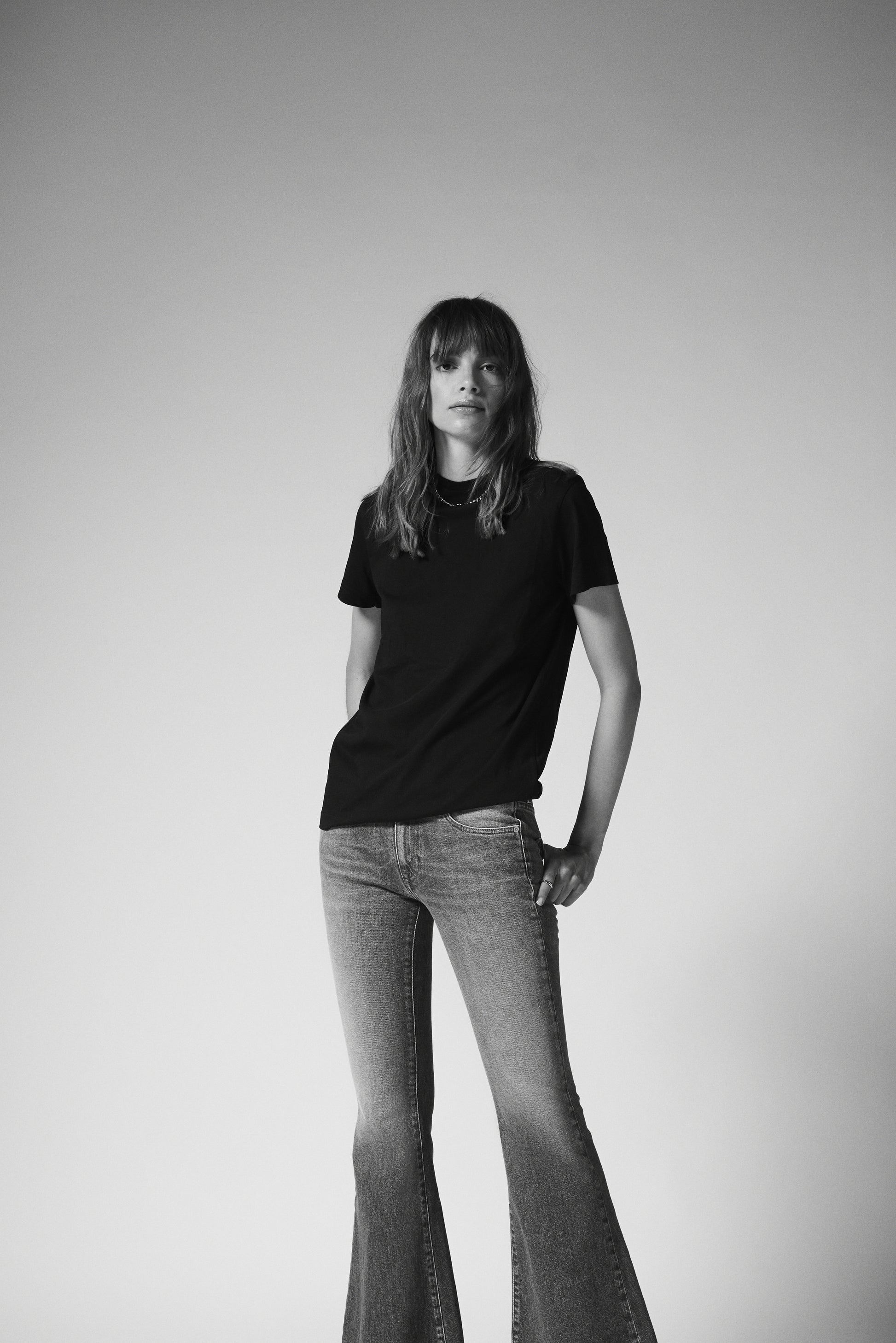 • Fitted through the hips and thighs, they elegantly widen from the knee down, creating a fluid and captivating movement