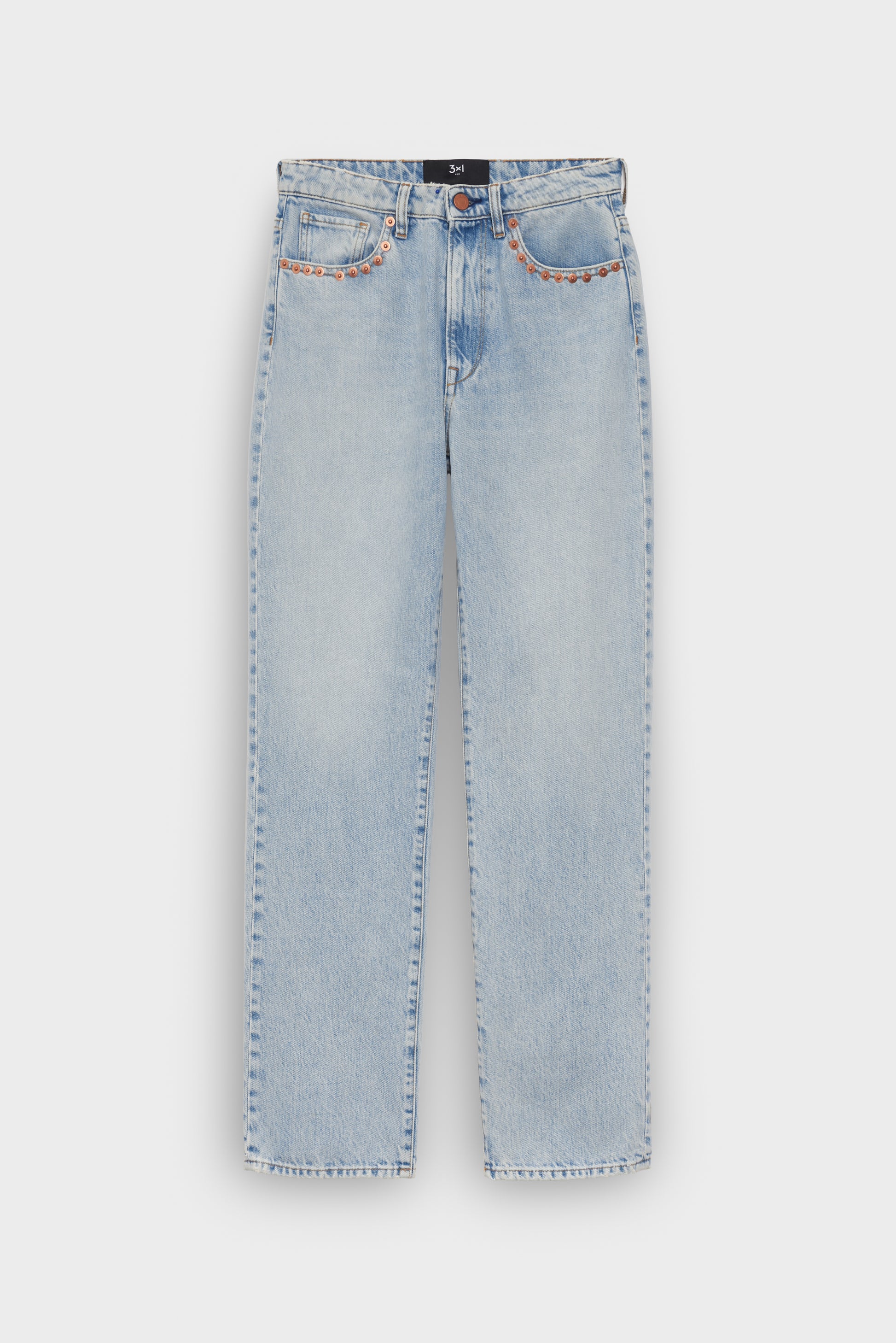 • A tasteful line of shimmering embellishments runs along the front pockets and waistband, adding an unexpected touch of glamour to classic denim